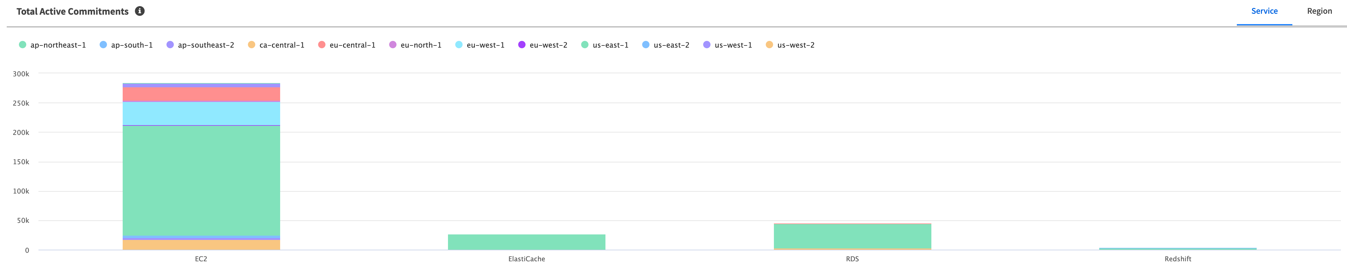 • Current Commitment: The amount currently committed to reserved instances. The lower the commitment, the more flexible and dynamic the account's compute resources can be.